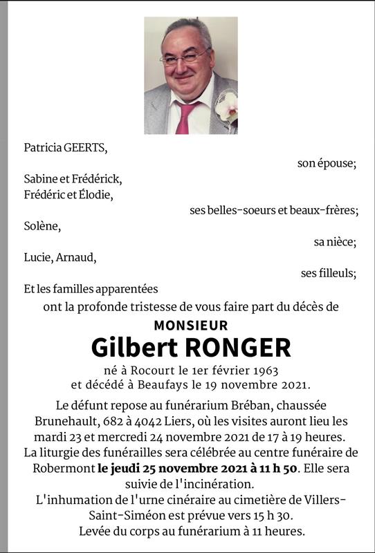 Monsieur Gilbert RONGER époux de Patricia GEERTS