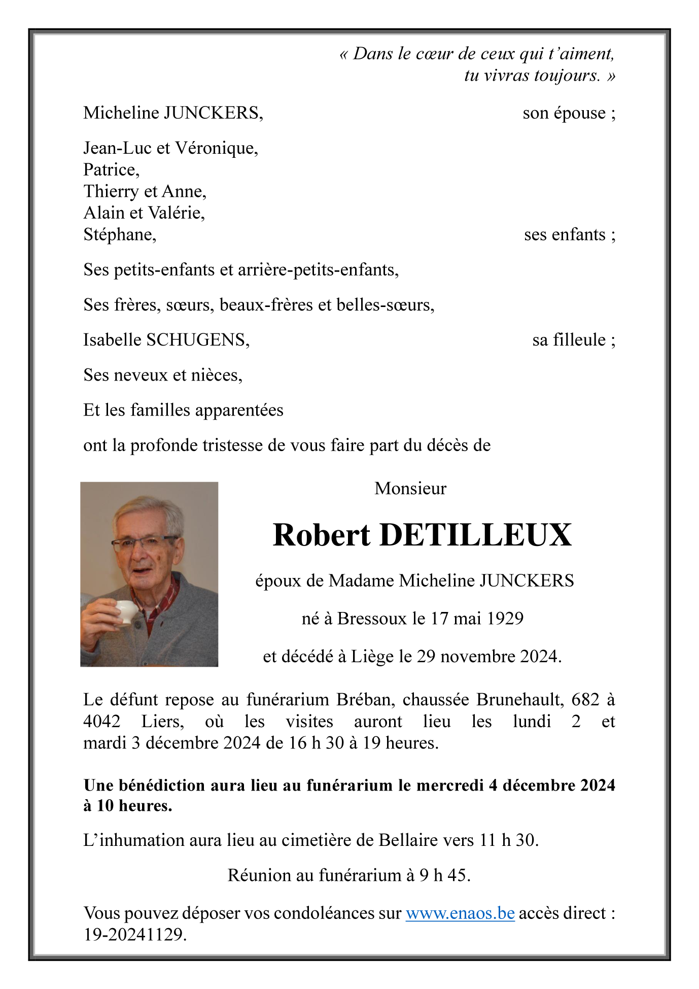 Monsieur Robert DETILLEUX époux de Micheline JUNCKERS