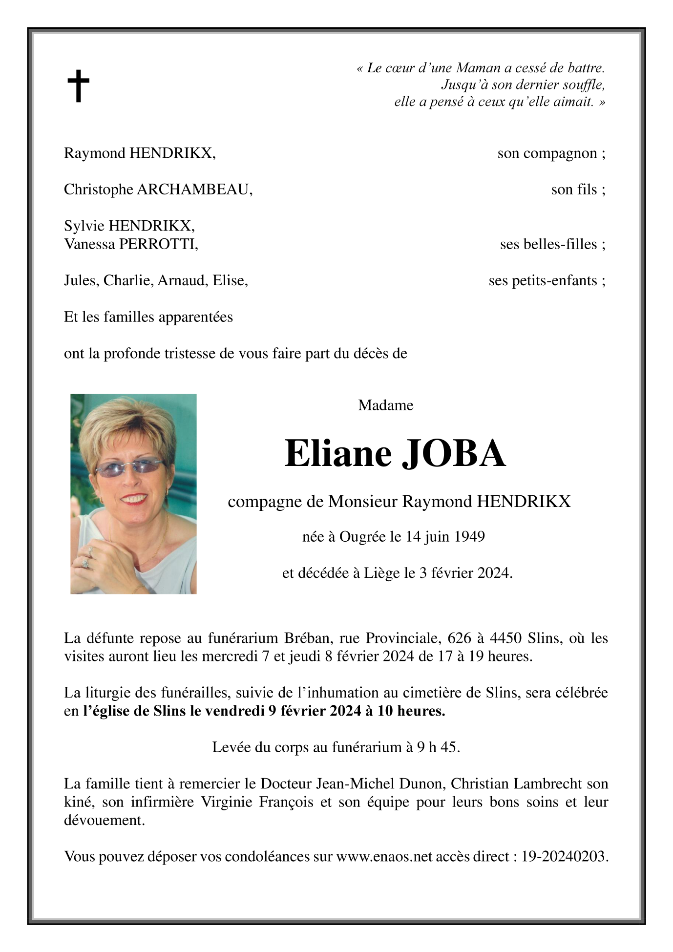 Madame Eliane JOBA compagne de Raymond HENDRIKX