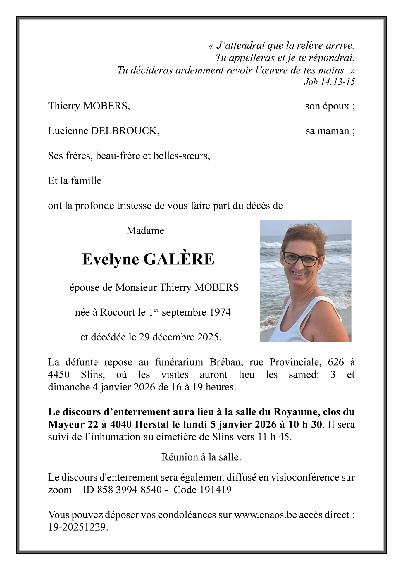 Madame Evelyne GALÈRE épouse de Thierry MOBERS