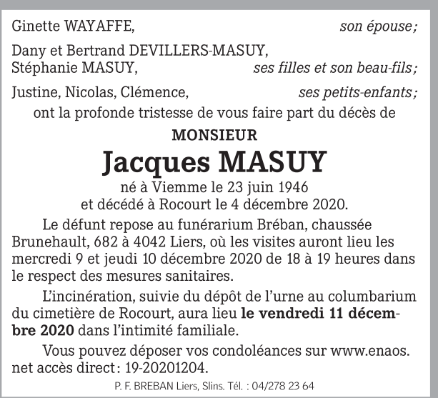 Monsieur Jacques MASUY époux de Ginette WAYAFFE