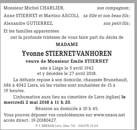 Madame Yvonne STIERNET-VANHOREN