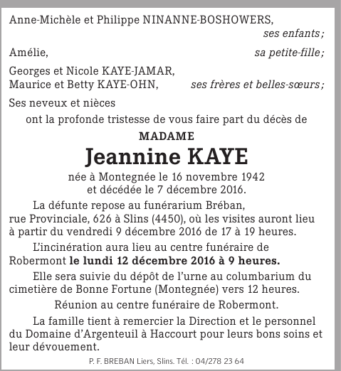 Madame Jeannine KAYE