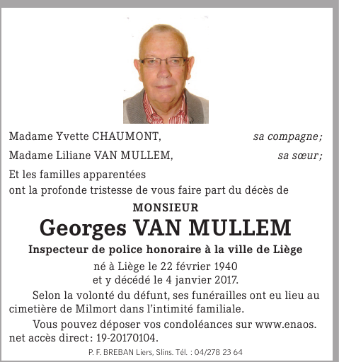 Monsieur Georges VAN MULLEM compagnon d'Yvette CHAUMONT