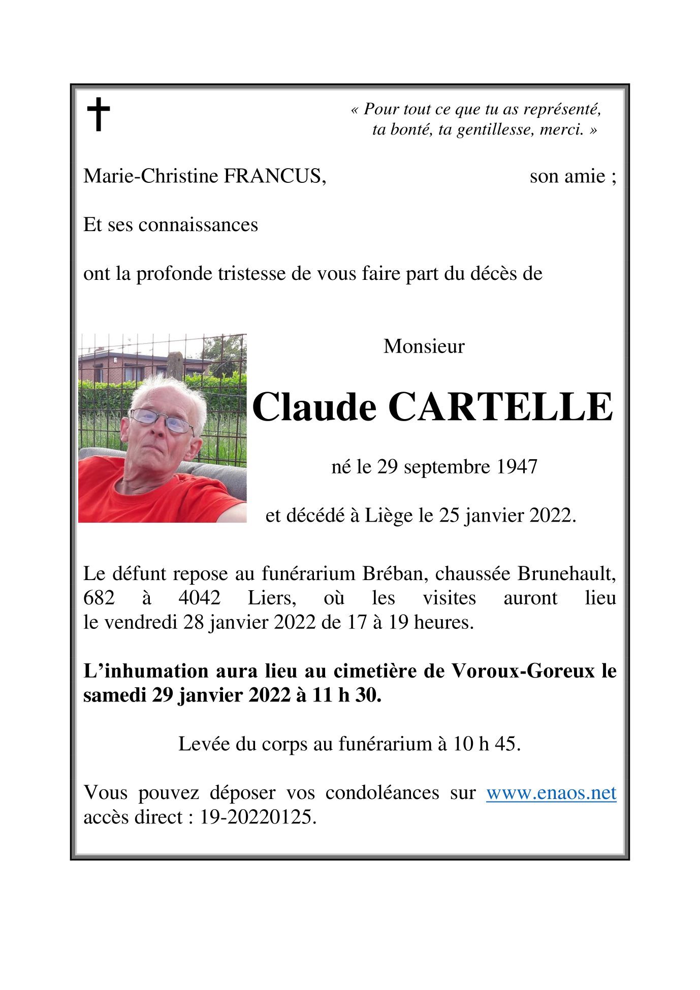 Décédé à Liège (4000) le mardi 25 janvier 2022 à l'âge de 74 ans
