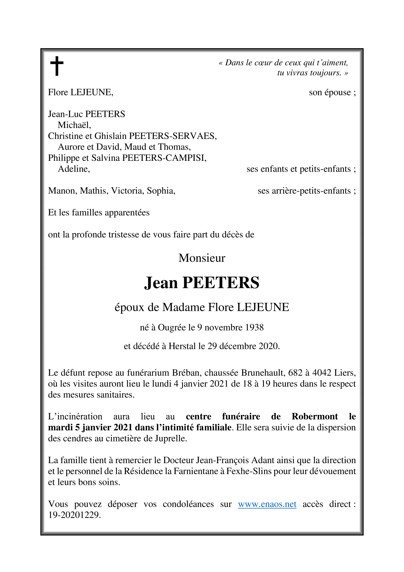 Monsieur Jean PEETERS époux de Flore LEJEUNE