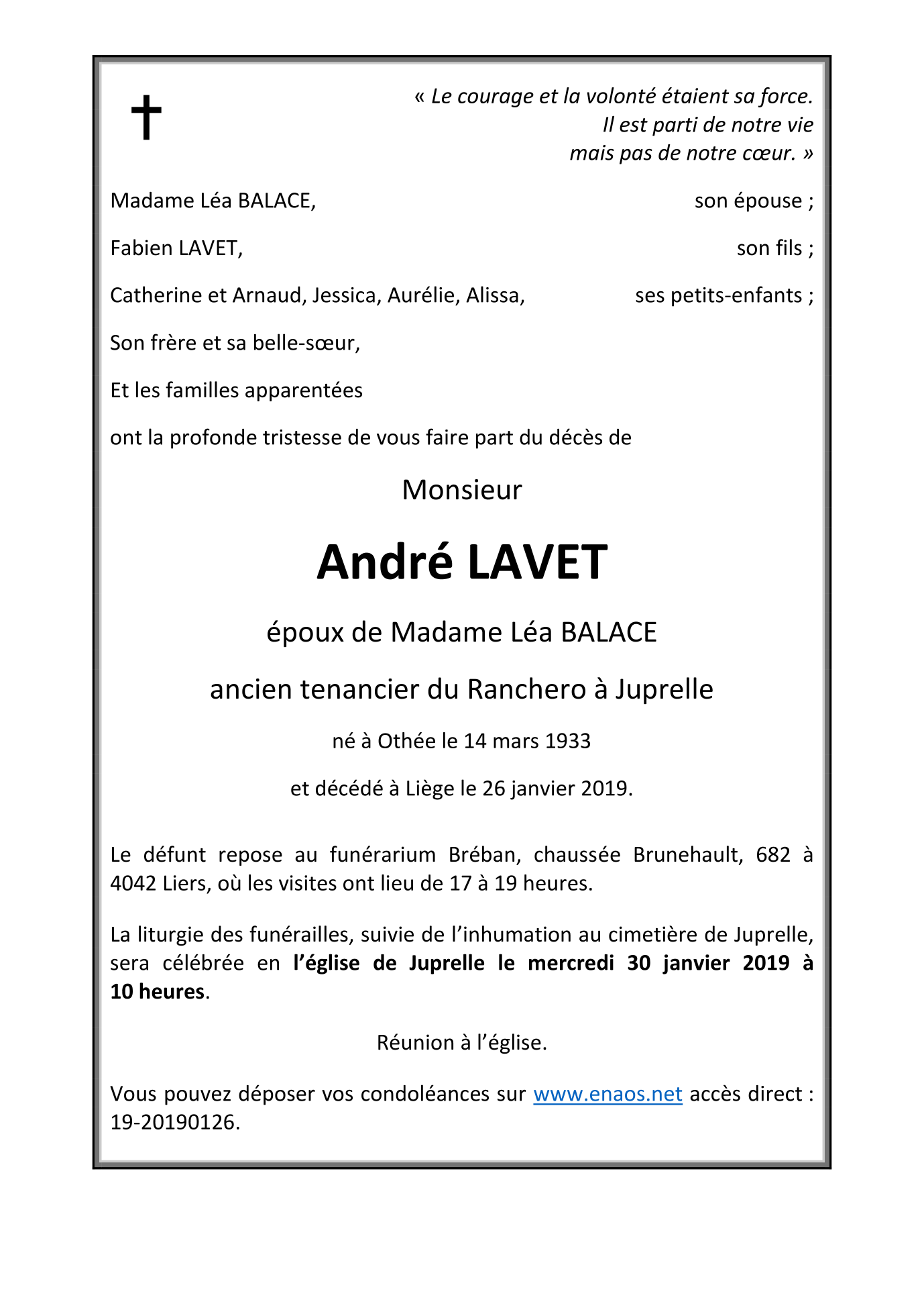 Décédé à Liège (4000) le samedi 26 janvier 2019 à l'âge de 85 ans