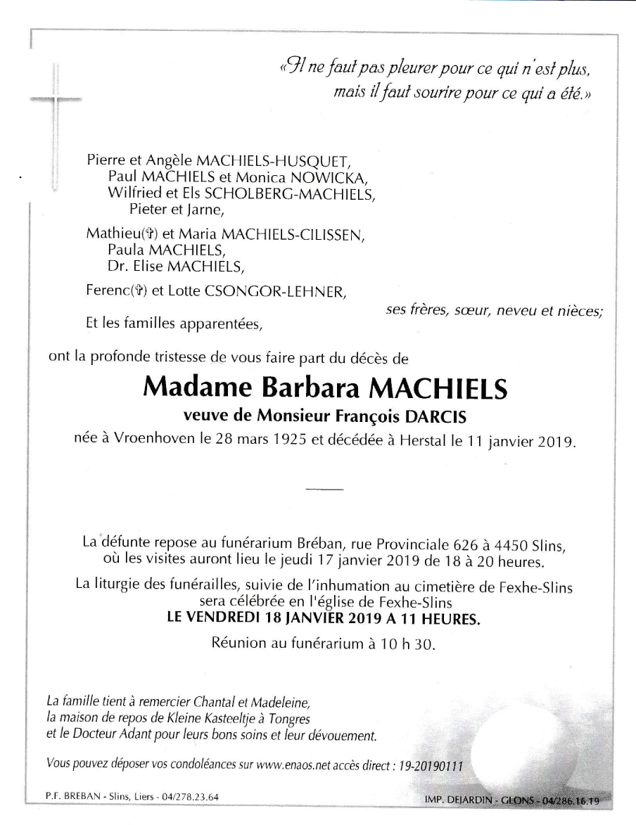 Décédée à Herstal (4040) le vendredi 11 janvier 2019 à l'âge de 93 ans