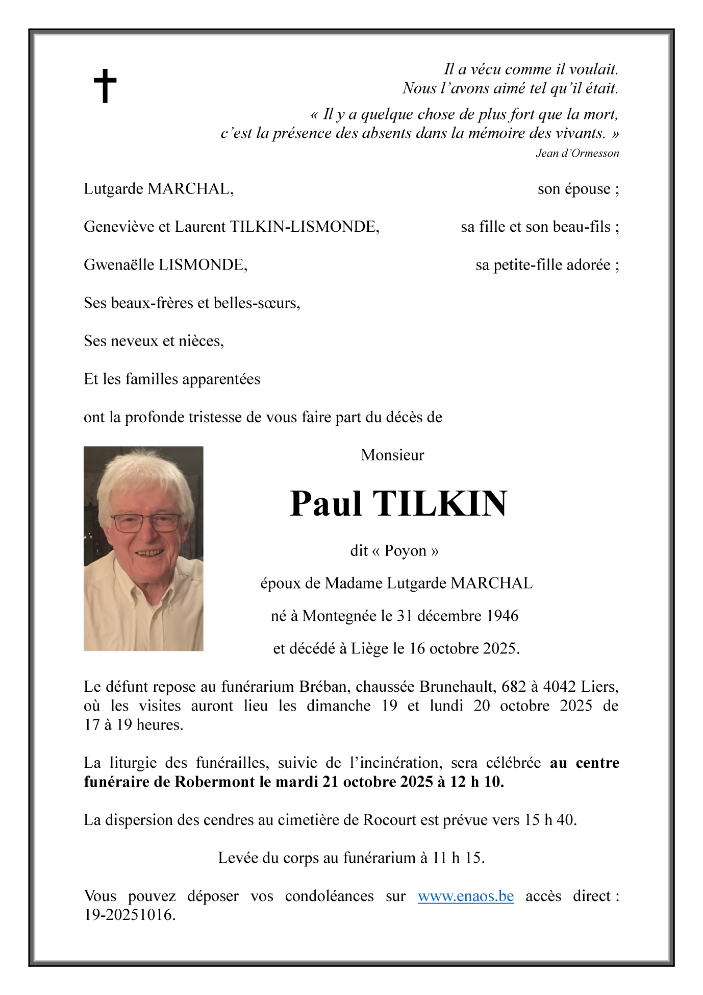 Monsieur Paul TILKIN époux de Lutgarde MARCHAL