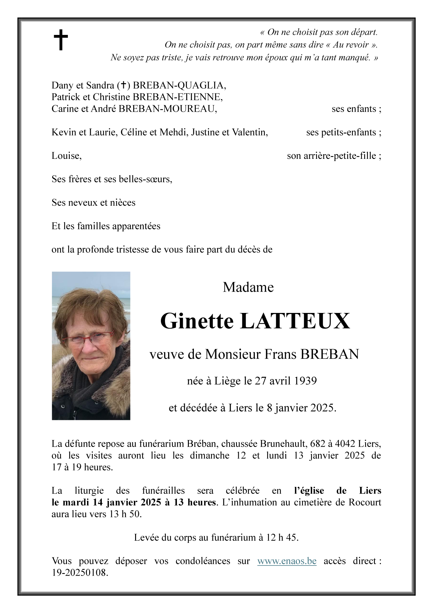 Madame Ginette LATTEUX veuve de Frans BREBAN