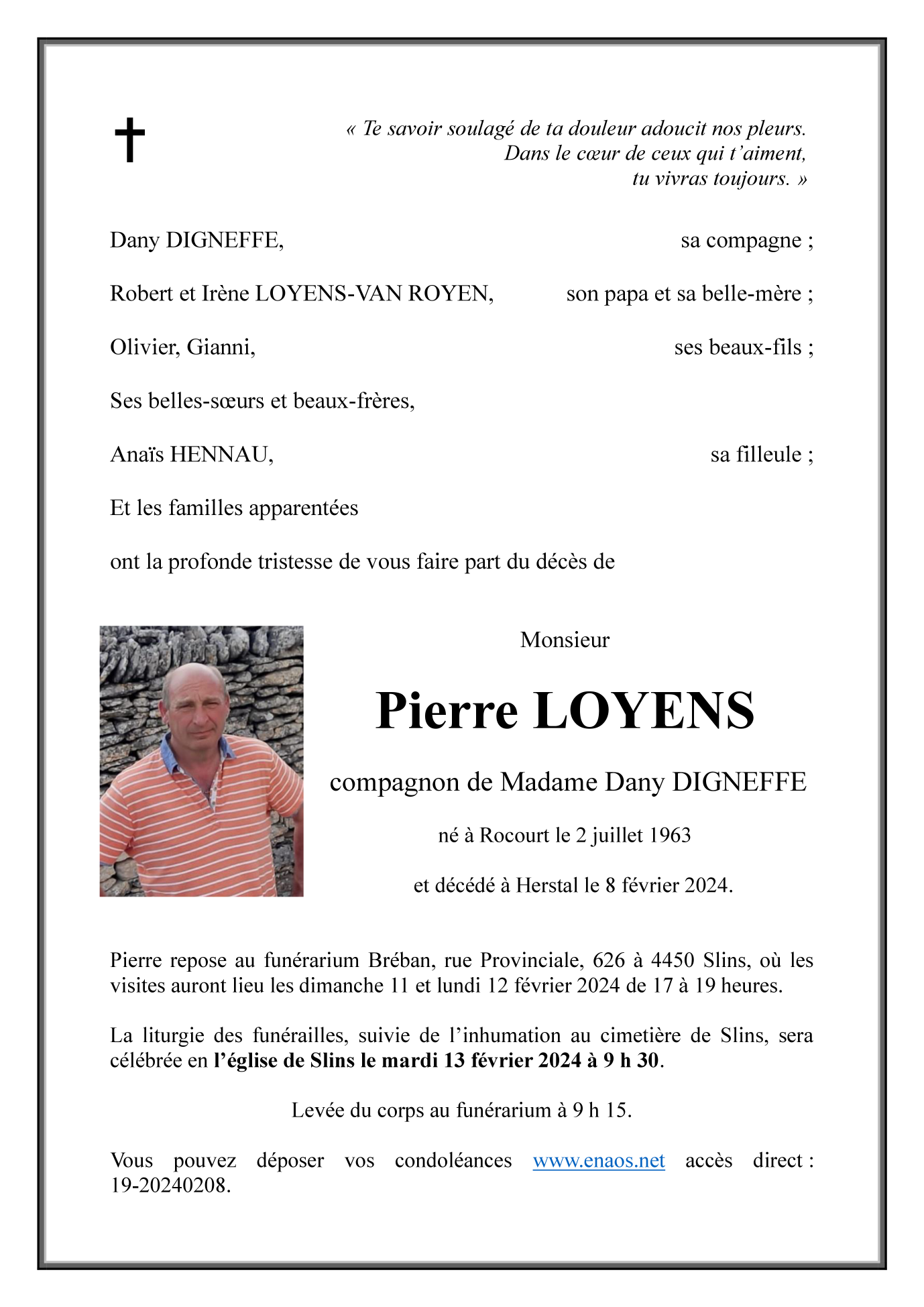 Monsieur Pierre LOYENS compagnon de Dany DIGNEFFE