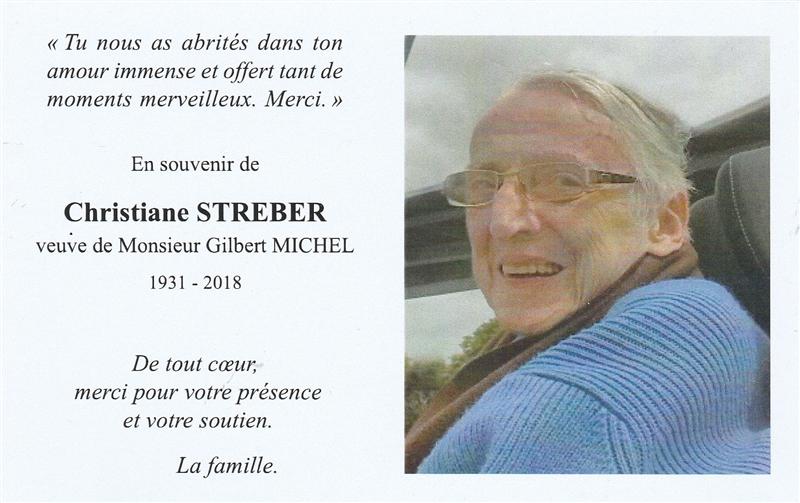Madame Christiane STREBER veuve de Gilbert MICHEL