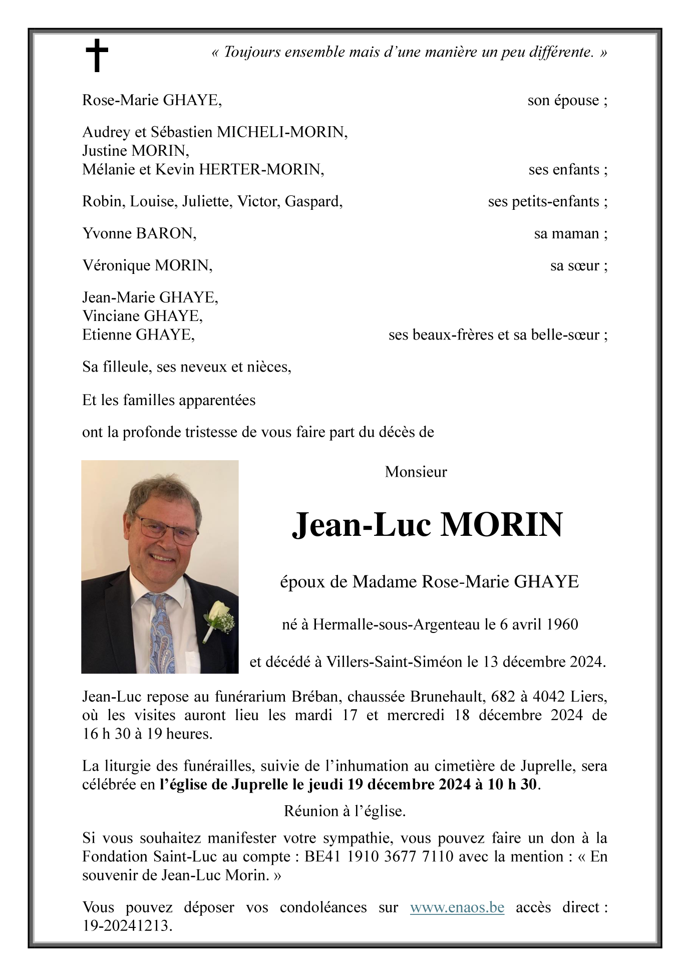 Monsieur Jean-Luc MORIN époux de Rose-Marie GHAYE