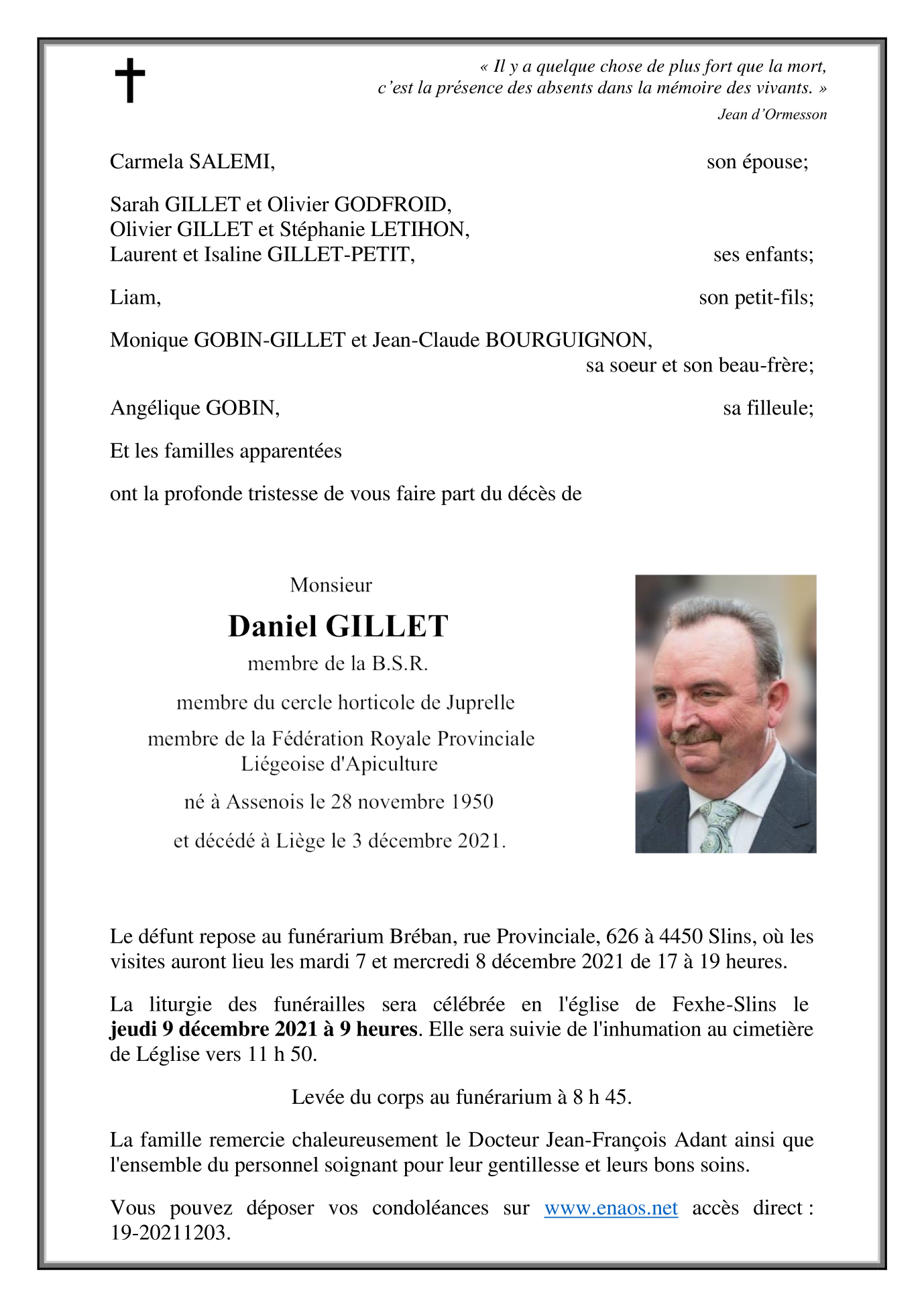 Monsieur Daniel GILLET époux de Carmela SALEMI