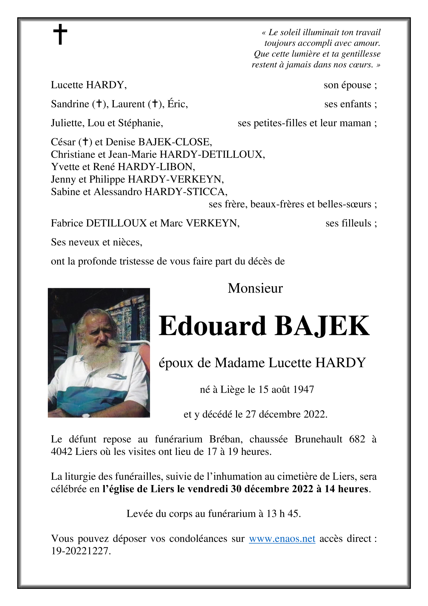 Monsieur Edouard BAJEK époux de Lucette HARDY