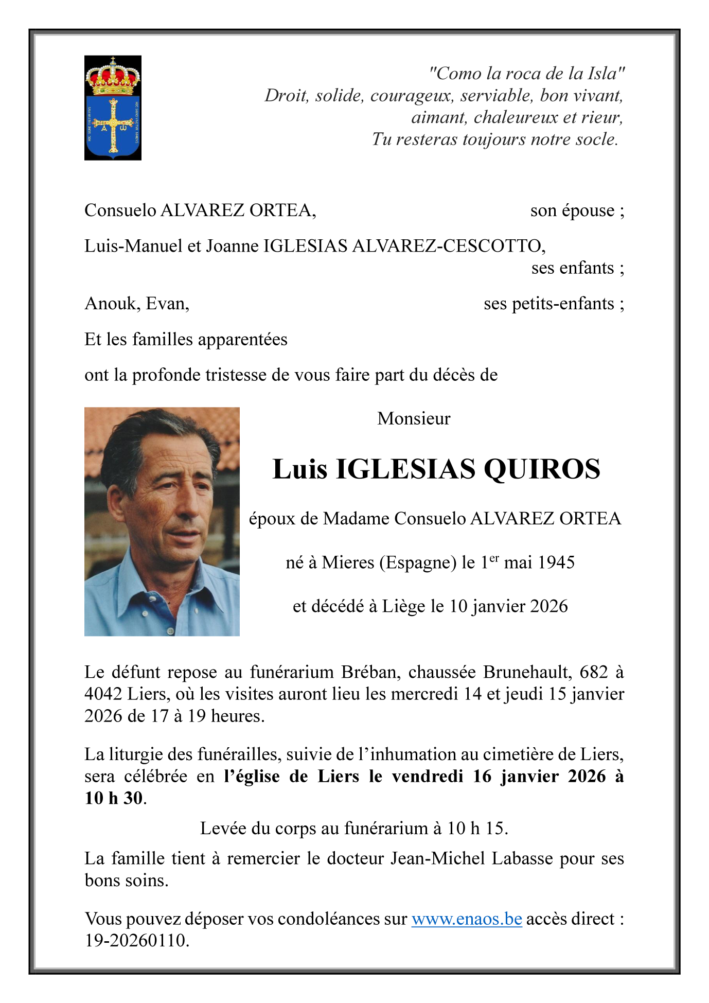 Monsieur Luis IGLESIAS QUIROS époux de Consuelo ALVAREZ ORTEA